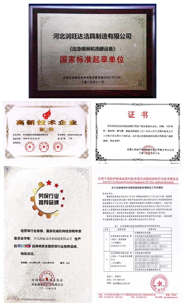 經(jīng)過(guò)多年發(fā)展,潤(rùn)旺達(dá)公司斥資建立了同行業(yè)少有的產(chǎn)品檢測(cè)中心,擁有光譜分析儀、鹽霧測(cè)試機(jī)、壽命測(cè)試機(jī)、水壓密封測(cè)試機(jī)、氣密測(cè)試機(jī)、強(qiáng)度測(cè)試機(jī)、流量測(cè)試機(jī)等多臺(tái)先進(jìn)檢測(cè)設(shè)備,構(gòu)建高效的企業(yè)研發(fā)和產(chǎn)品檢測(cè)體系,參與起草制定了《GB/T38144.2-2019應(yīng)急噴淋和洗眼設(shè)備》國(guó)家標(biāo)準(zhǔn),并以先進(jìn)的研發(fā)體系,申請(qǐng)獲得了多項(xiàng)洗眼器專利證書(shū),滿足并超越洗眼器行業(yè)需求。