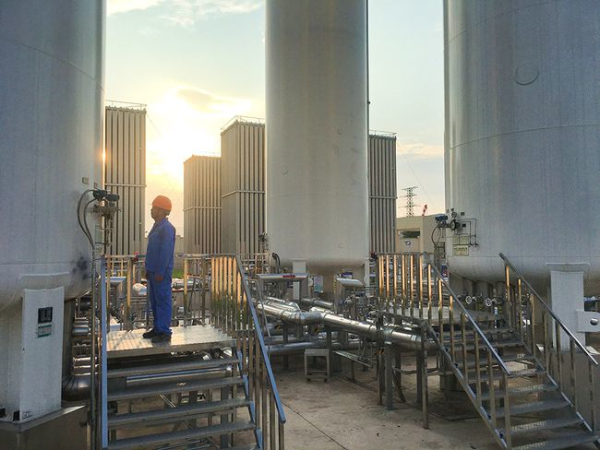 義烏天然氣公司蘇溪LNG應(yīng)急儲(chǔ)備站進(jìn)液現(xiàn)場。