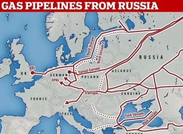 (俄羅斯向歐洲輸送天然氣的管道,分為陸上管道和海底管道)