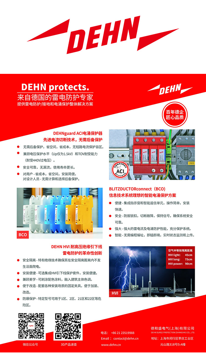 一百多年來DEHN 一直為防雷和電涌防護(hù)提供可靠的產(chǎn)品和方案,保證用戶的系統(tǒng)及設(shè)備安全運(yùn)行。